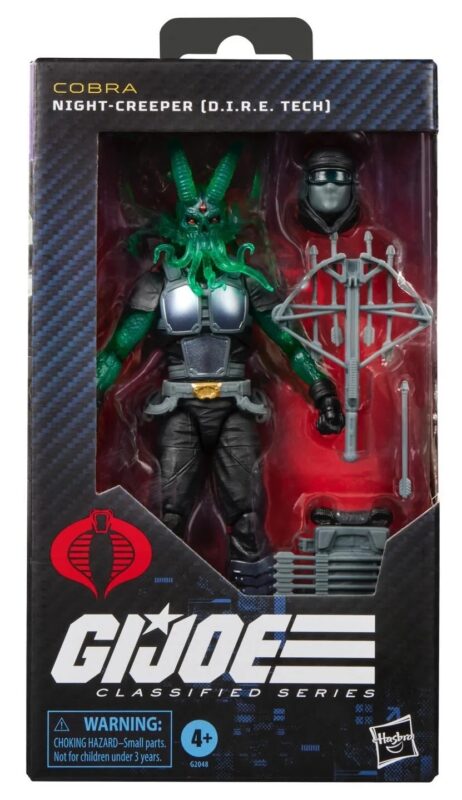 And if you’re into the ghostly Walmart exclusives that are impossible to find in California and somehow on clearance everywhere else… Hasbro has blessed us with the Night‑Creeper “D.I.R.E. Tech” figure. Think eerie, iridescent, X‑Files‑green translucent plastic. It’s wild.